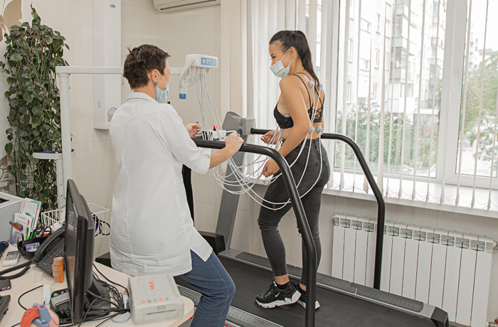 Из нагрузочных проб чаще всего используется велоэргометрия (на велотренажере) и тредмил-тест. Последний вариант является самым современным и физиологичным.